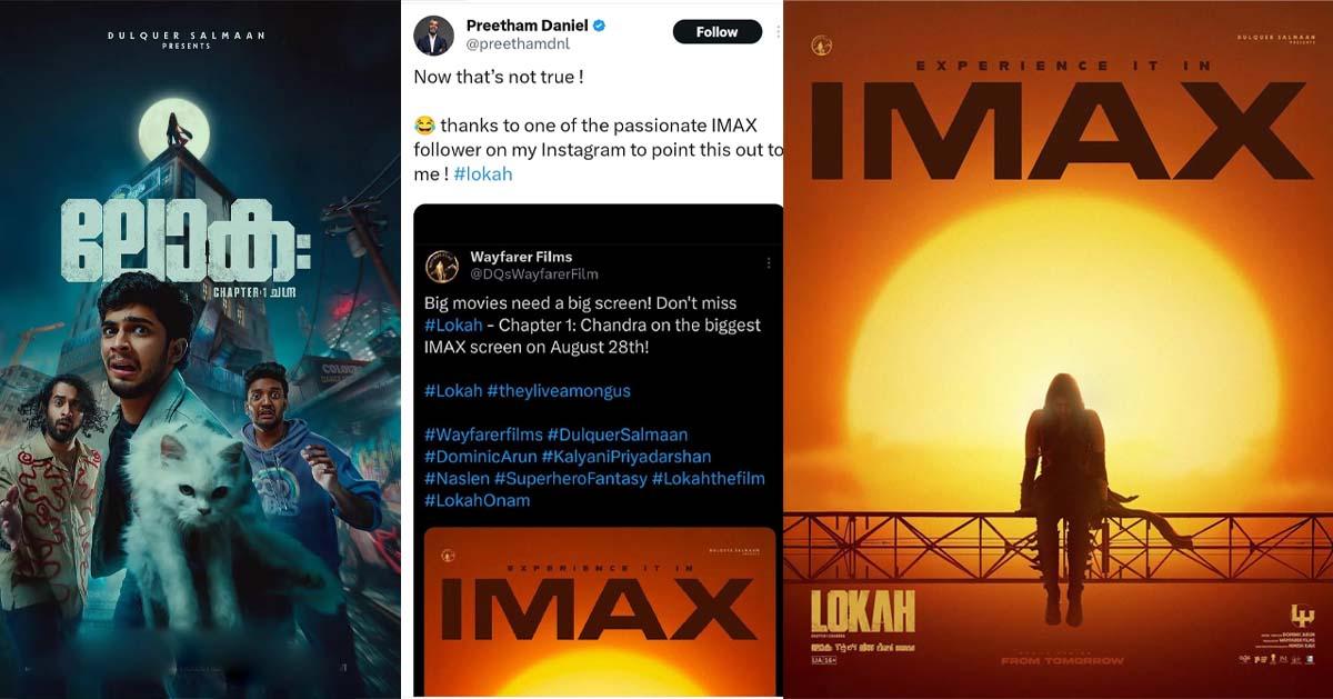 Lokah is not on IMAX but @DQsWayfarerFilm I’m sure we will work together in the future to release one of your films on IMAX. Thanks for taking down your post.