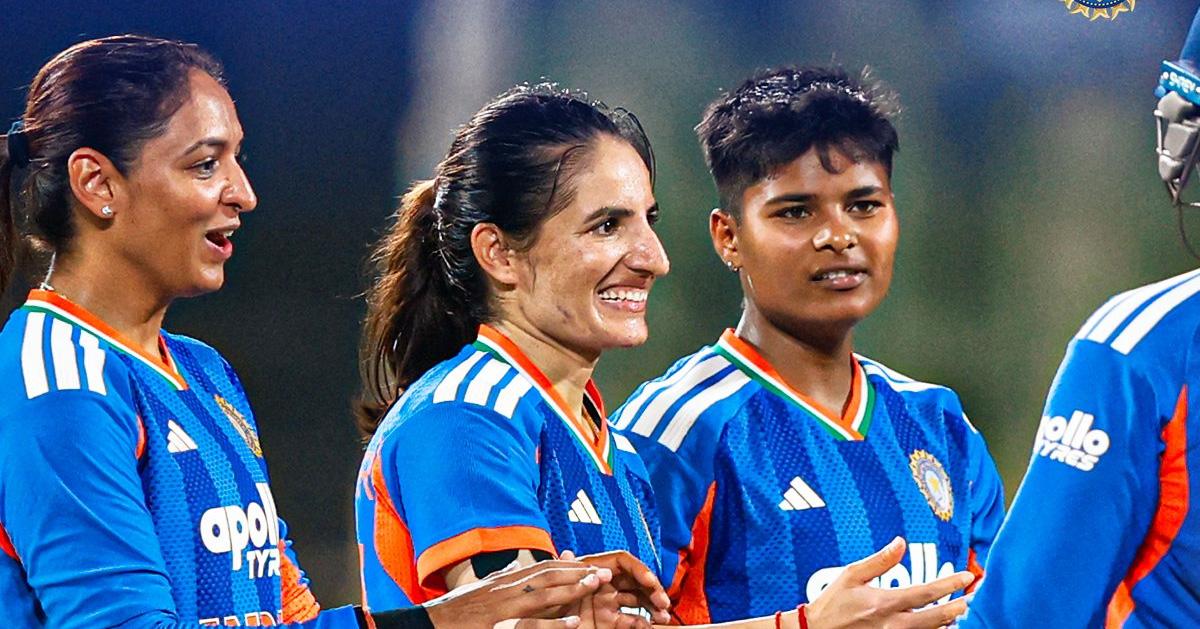 മത്സരത്തിനിടെ ഇന്ത്യൻ വനിതാ താരങ്ങൾ. Photo: BCCI Women/x.com