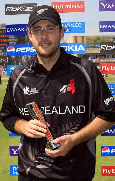 പ്ലെയര് ഓഫ് ദി മാച്ച് പുരസ്കാരവുമായി ഡാനിയല് വെറ്റോറി. Photo: Destroy The Stumps/Instagram