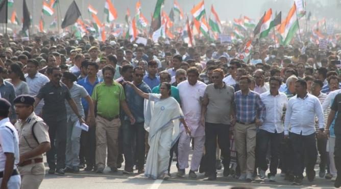 ബംഗാളില് മമതാ ബാനര്ജിയുടെ നേതൃത്വത്തിലും സമരം ശക്തമാവുകയാണ്. ആയിരക്കണക്കിന് ആളുകളാണ് പ്രതിഷേധ റാലിയില് പങ്കെടുത്തത്. നിയമം പിന്വലിക്കാന് സര്ക്കാര് തയ്യാറാകണമെന്നും അതുവരെ സമരം തുടരുമെന്നും മമത അറിയിച്ചു.