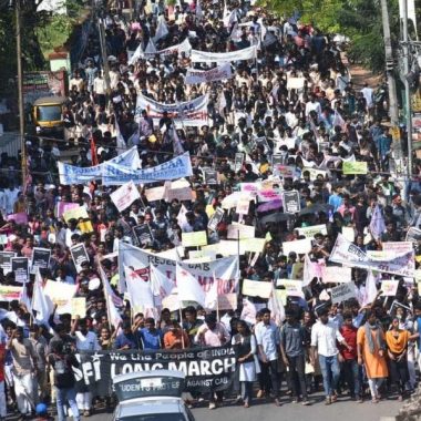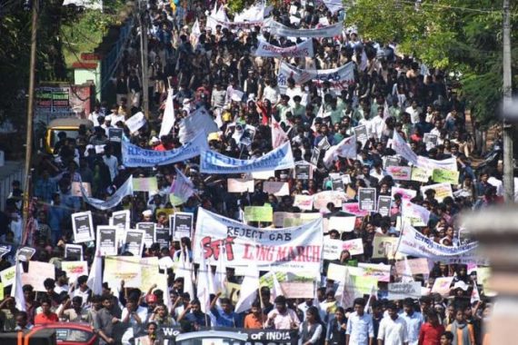 പൗരത്വ നിയമത്തിനെതിരെ കോഴിക്കോട് വിക്രം മൈതാനി മുതല് മാനാഞ്ചിറ വരെ എസ്.എഫ്.ഐയുടെ നേതൃത്വത്തില് സംഘടിപ്പിച്ച ലോങ് മാര്ച്ചില് ആയിരക്കണക്കിന് വിദ്യാര്ഥികളാണ് പങ്കെടുത്തത്.