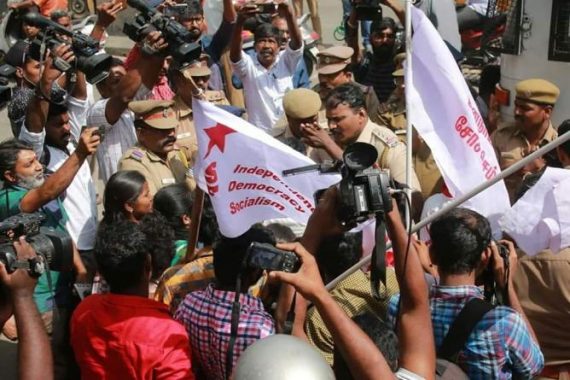 വിദ്യാഭ്യാസത്തെയും ജനാധിപത്യത്തെയും രാഷ്ട്രത്തെയും സംരക്ഷിക്കണം എന്ന മുദ്രാവാക്യമുയര്ത്തി തമിഴ്നാട്ടില് എസ്.എഫ്.ഐ പ്രവര്ത്തകരും പ്രതിഷേധം സംഘടിപ്പിച്ചു. പ്രതിഷേധത്തിനിടെ പൊലീസ് ലാത്തിച്ചാര്ജ് നടത്തിയെന്നാണ് റിപ്പോര്ട്ട്. നിരവധി വിദ്യാര്ത്ഥികളെ പൊലീസ് കസ്റ്റഡിയിലെടുത്തിരിക്കുകയാണ്.