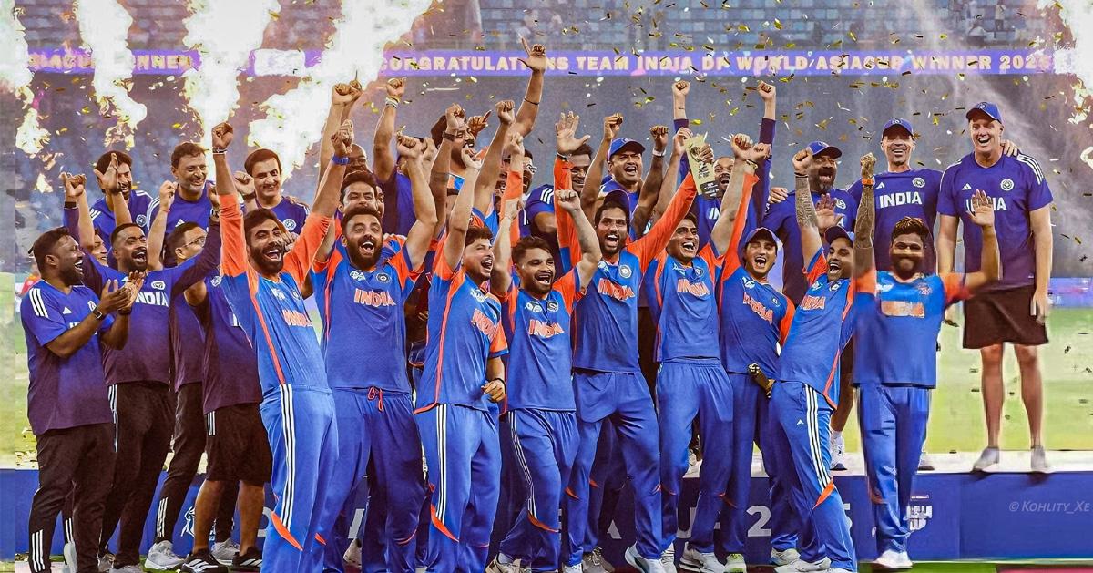 ഏഷ്യാ കപ്പ് നേടിയ ഇന്ത്യൻ ടീമിന്റെ ആഘോഷം. Photo: Shebas/x.com