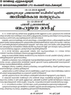 സ്വകാര്യസ്ഥലത്ത് കെട്ടിയിരുന്ന പഴയ സമരപ്പന്തല് പൊലീസ് പൊളിച്ചുമാറ്റിയെന്നും സമിതി പറഞ്ഞു. ജനങ്ങളുടെ ജീവനും സ്വത്തിനും ഭീഷണിയായ സംഭരണശാല പുതുവൈപ്പിനില് നിന്നും മാറ്റുക എന്ന വര്ഷങ്ങളായുള്ള നിവാസികളുടെ ആവശ്യത്തില് നിന്നും പിന്നോട്ടില്ല എന്ന് സമരസമിതി അംഗങ്ങള് അറിയിച്ചു.