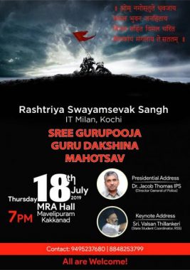 ആര്.എസ്.എസ് ഐ.ടി മിലാനാണ് പരിപാടി സംഘടിപ്പിക്കുന്നത്. ആര്.എസ്.എസ് സംസ്ഥാന വിദ്യാര്ഥി കോര്ഡിനേറ്റര് വല്സന് തില്ലങ്കേരി മുഖ്യ പ്രഭാഷണം നടത്തുന്ന ചടങ്ങില് ജേക്കബ് തോമസ് അധ്യക്ഷനാവും.