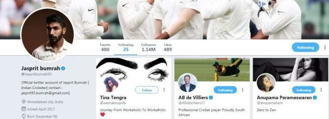 എന്നാല് ബുംറയുടെ പ്രിയതാരം ആരാണെന്നറിഞ്ഞ് ഞെട്ടിയിരിക്കുകയാണു മലയാളികള്. ട്വിറ്ററില് 10 ലക്ഷത്തോളം ഫോളോവേഴ്സുള്ള ബുംറ ഫോളോ ചെയ്യുന്നത് കേവലം 25 പേരെ മാത്രമാണ്. ഇതിലാകട്ടെ ഒരു സിനിമാനടി മാത്രമാണ് ഇടംപിടിച്ചിരിക്കുന്നത്. അതാകട്ടെ, മലയാളികളുടെ പ്രിയപ്പെട്ട ‘മേരി’യും. പ്രേമത്തിലൂടെ അരങ്ങേറി മലയാളക്കര കീഴടക്കിയ അനുപമ പരമേശ്വരന്.