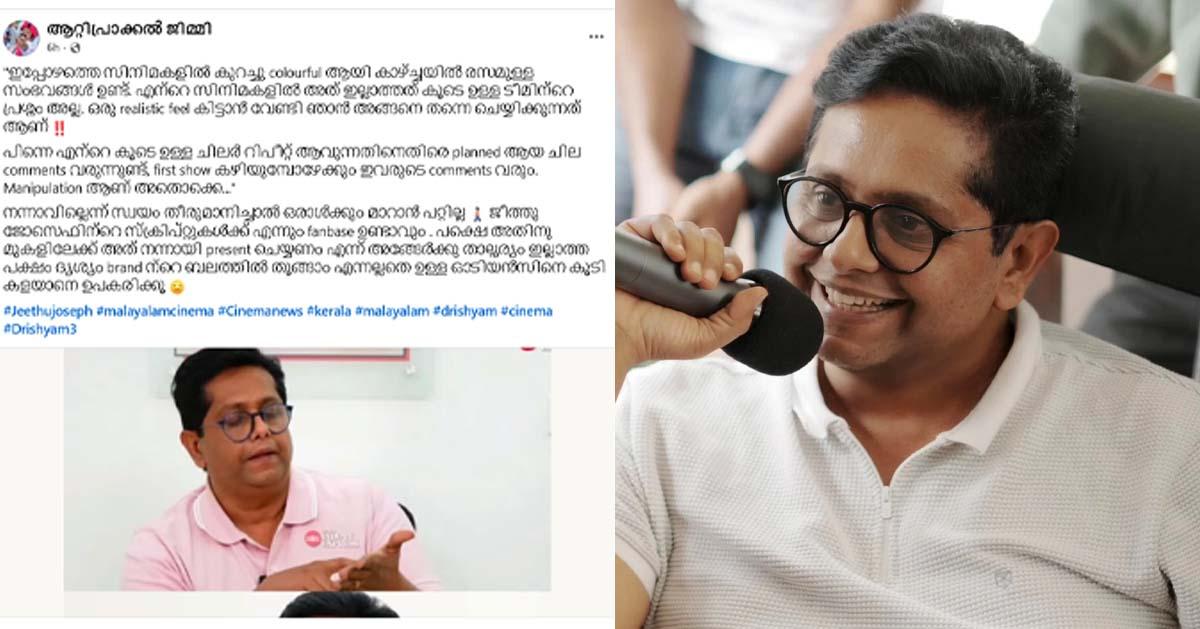 വിമര്ശനങ്ങളോടുള്ള ജീത്തുവിന്റെ ഇത്തരം ആറ്റിറ്റിയൂഡ് ഇപ്പോള് ചര്ച്ചാവിഷയമായിരിക്കുകയാണ്. മാറില്ല എന്ന് തീരുമാനിച്ചുറപ്പിച്ചയാളാണ് ജീത്തുവെന്നാണ് പറഞ്ഞുകൊണ്ട് പലരും പോസ്റ്റുകള് പങ്കുവെച്ചു. വിമര്ശനങ്ങള് അംഗീകരിക്കാത്ത സംവിധായകനാണ് ജീത്തു ജോസഫെന്നും തിരക്കഥയെഴുതാനുള്ള കഴിവ് മേക്കിങ്ങിലും കാണിക്കണമെന്നും അഭിപ്രായങ്ങളുണ്ട്.