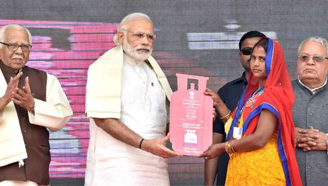 മൂന്നുവര്ഷം കൊണ്ട് ദാരിദ്ര രേഖയ്ക്ക് താഴെയുള്ള അഞ്ചുകോടി വീടുകളില് പാചക വാതക കണക്ഷനുകള് എത്തിക്കാനായി 2016ല് മോഡി സര്ക്കാര് തുടക്കമിട്ടതാണ് പ്രധാന മന്ത്രി ഉജ്ജ്വല യോജന എന്ന ഈ പദ്ധതി. ഒരു വീടിന് സര്ക്കാര് ചെലവഴിക്കുന്നത് 1,600 രൂപയാണ്. ഇതനുസരിച്ച്, പാചക വാതക കണക്ഷനുകള് ഇല്ലാത്ത വീടുകളില് പുതിയ കണക്ഷന് എണ്ണ കമ്പനികള് സൗജന്യമായി നല്കും. ഗ്യാസ് സിലിണ്ടറിനും ഫിറ്റിംങ് ചാര്ജിനും ഉപഭോക്താവ് എണ്ണക്കമ്പനിക്ക് നല്കേണ്ട സെക്യൂരിറ്റി തുകയാണ് ഈ 1,600 രൂപ. അത് ഉപഭോക്താവ് നല്കേണ്ടതില്ല, സര്ക്കാര് കമ്പനികള്ക്ക് നല്കിക്കൊള്ളും. എണ്ണക്കമ്പനികളും ഒരു ആനുകൂല്യം ഉപഭോക്താവിന് നല്കുന്നുണ്ട്. ഗ്യാസ് സ്റ്റൗവിന്റെയും ആദ്യത്തെ സിലിണ്ടറിന്റെയും വില വരും മാസങ്ങളില് സിലിണ്ടര് വാങ്ങുന്നതിനൊപ്പം ഗഡുക്കളായി നല്കിയാല് മതി.