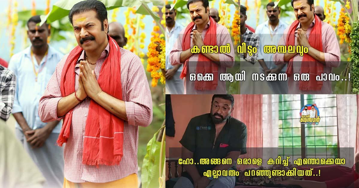 കഴുത്തില് തോര്ത്തും ചുറ്റി, മാല ധരിച്ച് തൊഴുത് നില്ക്കുന്ന മമ്മൂട്ടിയാണ് പോസ്റ്ററിലുള്ളത്. പിന്നാലെ ചില രസിപ്പിക്കുന്ന കമന്റുകളും ചിലര് പങ്കുവെച്ചു. ചിത്രത്തില് മമ്മൂട്ടിയുടേത് വില്ലന് കഥാപാത്രമാണെന്നും എന്നാല് ഈ പോസ്റ്റര് കണ്ടാല് അത് തോന്നുന്നില്ലെന്നുമാണ് പലരും അഭിപ്രായപ്പെടുന്നത്. ചില ട്രോളുകളും ഇതിനോടകം പുറത്തുവന്നിട്ടുണ്ട്.