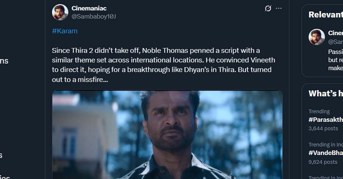 വിനീത് ശ്രീനിവാസന്‍ സംവിധാനം ചെയ്ത ഏറ്റവും പുതിയ ചിത്രം കരം കഴിഞ്ഞദിവസമാണ് ഒ.ടി.ടി സ്ട്രീമിങ് ആരംഭിച്ചത്. മനോരമ മാക്‌സിലൂടെയാണ് ചിത്രം പ്രേക്ഷകരിലേക്കെത്തിയത്. ഈ വര്‍ഷം മലയാളത്തിലെ ഏറ്റവും വലിയ ബോക്‌സ് ഓഫീസ് ദുരന്തങ്ങളുടെ പട്ടികയില്‍ ഇടംനേടിയ കരത്തിന് ഒ.ടി.ടിയിലും ട്രോളുകള്‍ ലഭിക്കുന്നുണ്ട്.