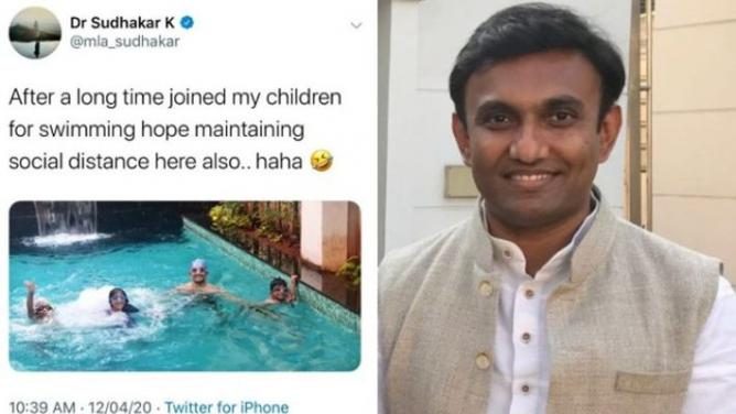 ബെംഗലൂരു: കര്ണാടകത്തില് സര്ക്കാര് കൊവിഡ് പ്രതിരോധ പ്രവര്ത്തനങ്ങളിലായിരിക്കെ സ്വിമ്മിങ് പൂളില്നിന്നുള്ള ചിത്രം പങ്കുവെച്ച ബി.ജെ.പി നേതാവും വിദ്യാഭ്യാസ മന്ത്രിയുമായ കെ സുധാകറിനെതിരെ കടുത്ത വിമര്ശനവുമായി കോണ്ഗ്രസ് സംസ്ഥാനാധ്യക്ഷന് ഡി.കെ ശിവകുമാര്.