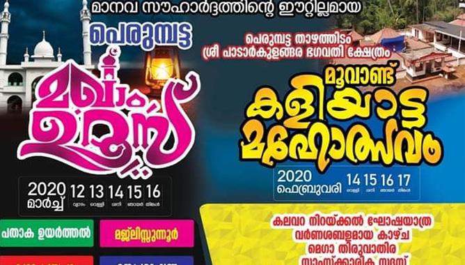 കാസര്കോട്ടെ പെരുമ്പട്ടയെന്ന ദേശത്തെ ജനങ്ങളുെട കഴിഞ്ഞ കുറച്ച് ദിനങ്ങള് കൈകോര്ക്കലിന്റെതായിരുന്നു, സാഹോദര്യത്തിന്റേതായിരുന്നു. ഒപ്പം വിശ്വാസധാരകള് പഠിപ്പിച്ച മൂല്യങ്ങളെ പങ്കു വെക്കലിന്റേതും. ഫെബ്രുവരി 12 നാണ് പെരുമ്പട്ട വലിയുല്ലാഹി നഗറില് മഖാം ഉറൂസ് തുടങ്ങിയത്. പെരുമ്പട്ട താഴത്തിടം പാടാര്കുളങ്ങര ഭഗവതി ക്ഷേത്ര കളിയാട്ടം ഫെബ്രവരി 14 നാണ് തുടങ്ങിയത്. ഈ രണ്ട് ആരാധനാലയങ്ങളിലെയും ആഘോഷങ്ങള് തമ്മില് വര്ഷങ്ങള് പഴക്കമുള്ള ഇഴപിരിയാത്ത ഒരു ബന്ധം ഉണ്ട്.