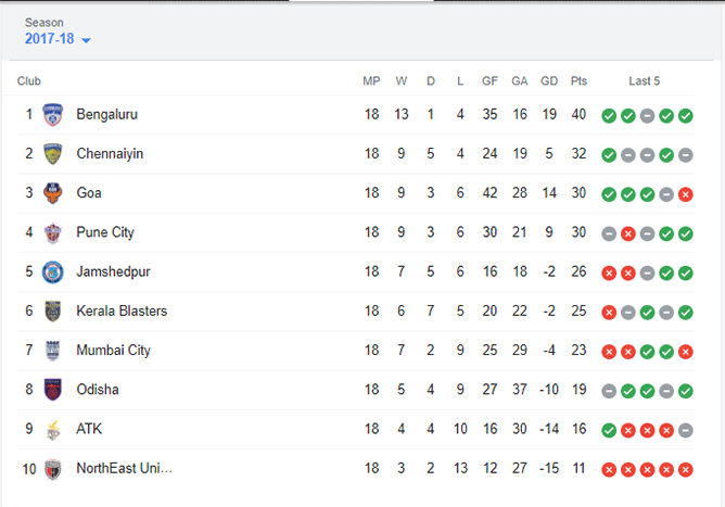 ഐ.എസ്.എല് 2018 സീസണിലാണ് ബ്ലാസ്റ്റേഴ്സിന് ഇതിന് മുന്പ് ഏറ്റവുമധികം പോയിന്റ് ഉണ്ടായിരുന്നത്. 18 കളികളില് നിന്നും ആറ് ജയവും അഞ്ച് തോല്വിയും ഏഴ് സമനിലയുമടക്കം 25 പോയിന്റുകളായിരുന്നു കൊമ്പന്മാര്ക്ക് ആ സീസണില് ഉണ്ടായിരുന്നത്.