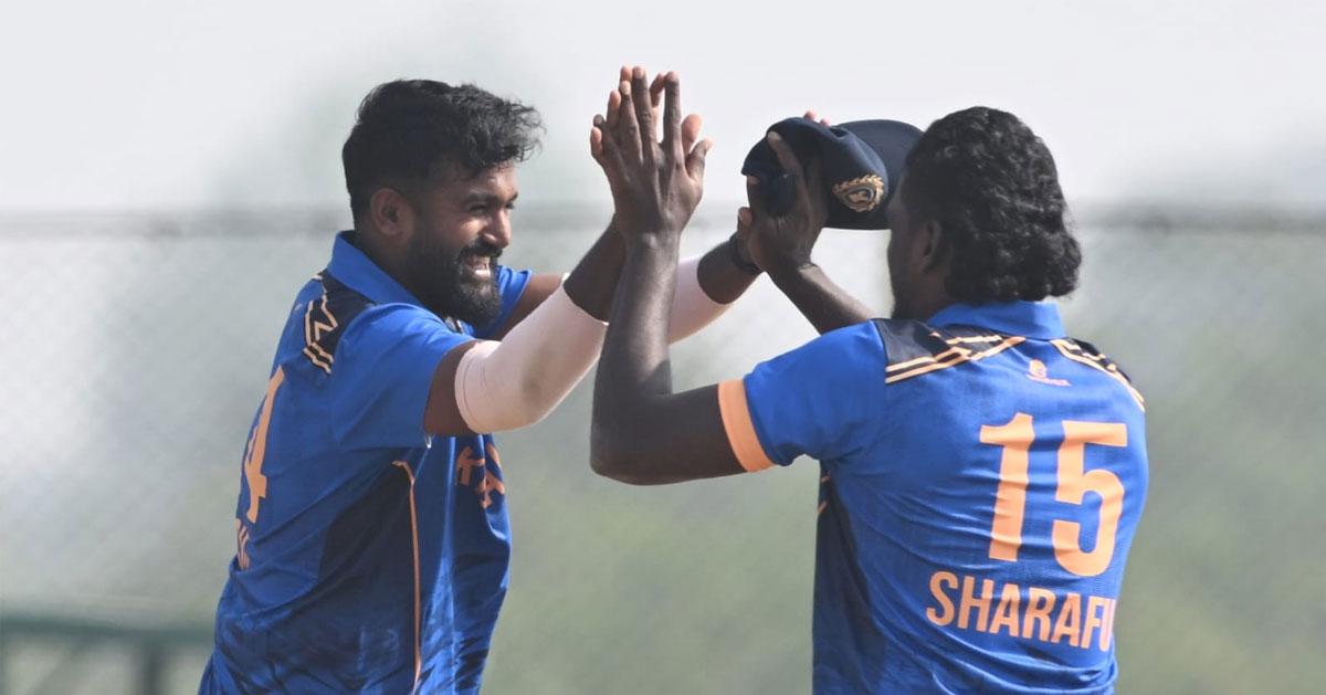 അസമിനായി സദഖ് നാല് വിക്കറ്റ് നേടി മികച്ച പ്രകടനം നടത്തി. അവിനോവ് ചൗധരി, അബ്ദുല്‍ അജിജ് ഖുറൈശി, മുഖ്താര്‍ ഹുസൈന്‍ എന്നിവര്‍ രണ്ട് വിക്കറ്റ് വീതം വീഴ്ത്തി.