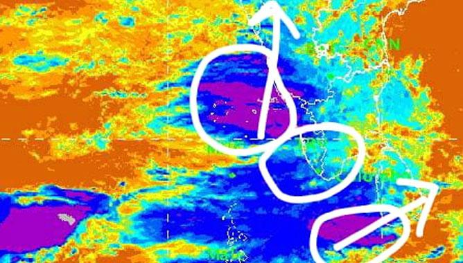 ന്യൂനമര്ദ്ദം പടിഞ്ഞാറോട്ട് നിങ്ങുന്നതുകൊണ്ട് തന്നെ പടിഞ്ഞാറന് കാറ്റിന്റെ ഗതി തെക്ക് നിന്ന് വടക്കോട്ടാവും. ഇപ്പോള് കേരളത്തില് കിട്ടിക്കൊണ്ടിരിക്കുന്ന മഴയ്ക്ക് അതുകൊണ്ട് തന്നെ ശമനം ഉണ്ടാകും. ഒരുപക്ഷേ ഇന്ന് കൂടി ഈ മഴ തുടരും. തെക്കന് കേരളത്തില് രണ്ട് ദിവസം മുന്പേ കിട്ടിയ അതിതീവ്ര മഴ ഇനി പ്രതീക്ഷിക്കുന്നില്ല. പ്രത്യേകിച്ചും എറണാകുളത്തിന് തെക്കോട്ടുള്ള ഭാഗത്ത്.