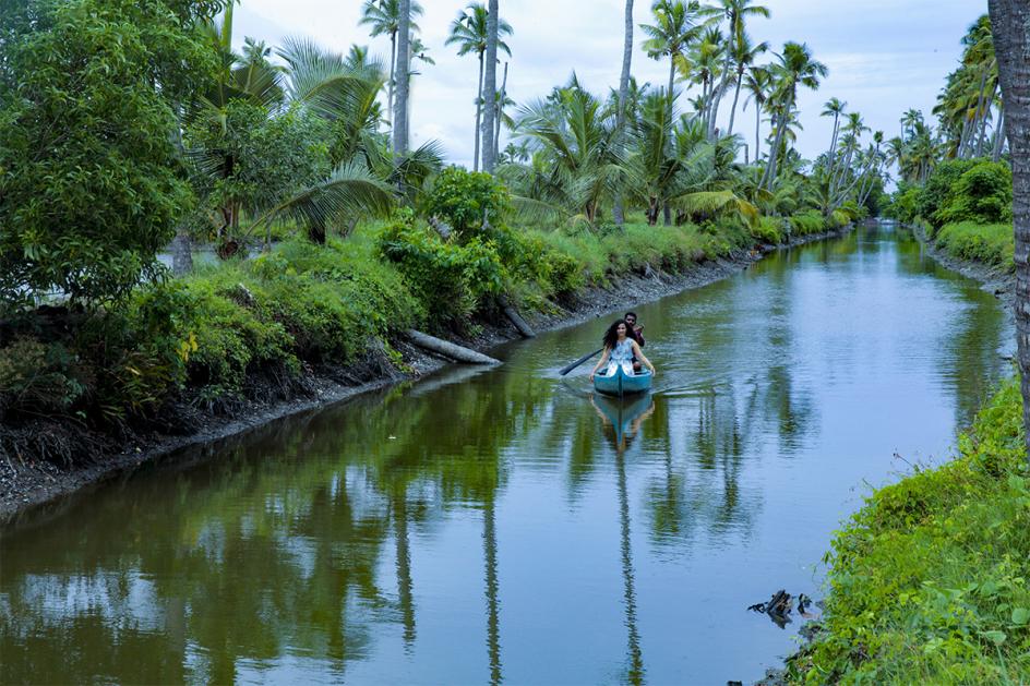 ഇടുങ്ങിയ കൈത്തോടുകളിലൂടെയുള്ള വള്ളങ്ങളിലെ കായല് സവാരി (കാനോയിങ്) ഒരിക്കല് അനുഭവിച്ചവര് ജീവിതത്തിലൊരിക്കലും മറക്കില്ല. തെങ്ങിന്തോപ്പുകളുടെയും കണ്ടല്ക്കാടുകളുടെയും മനോഹാരിത നിറഞ്ഞ കാഴ്ചകള് ഈ യാത്ര സമ്മാനിക്കും.