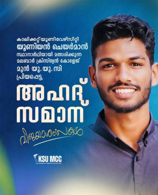 എന്നാല് ഇന്നലെ രാത്രിയോടെ തന്നെ ചെയര്മാന് സ്ഥാനാര്ത്ഥിയായി മത്സരിക്കുന്ന അഹദിന് അഭിവാദ്യമര്പ്പിച്ചുകൊണ്ടുള്ള പോസ്റ്ററുകള് പ്രത്യക്ഷപ്പെട്ടിരുന്നു. അഹദ് ഈ പോസ്റ്ററുകള് പങ്കുവെക്കുകയും ചെയ്തിരുന്നു.
