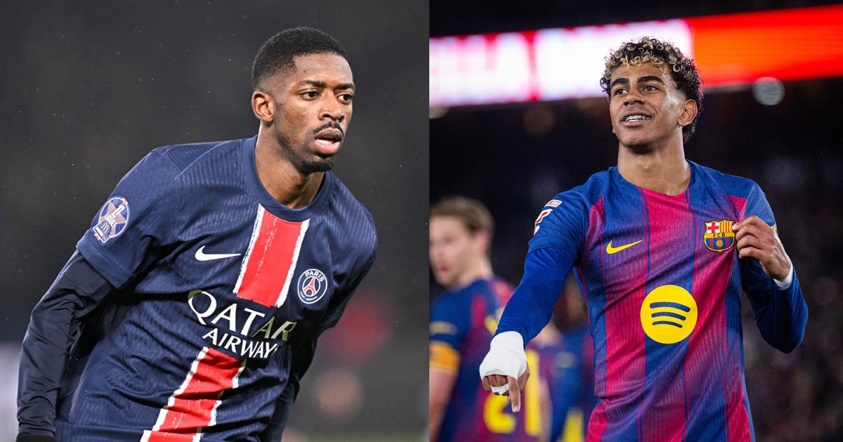 ഉസ്മാൻ ഡെംബലെയും ലാമിൻ യമാലും. Photo: Onefootball/x.com