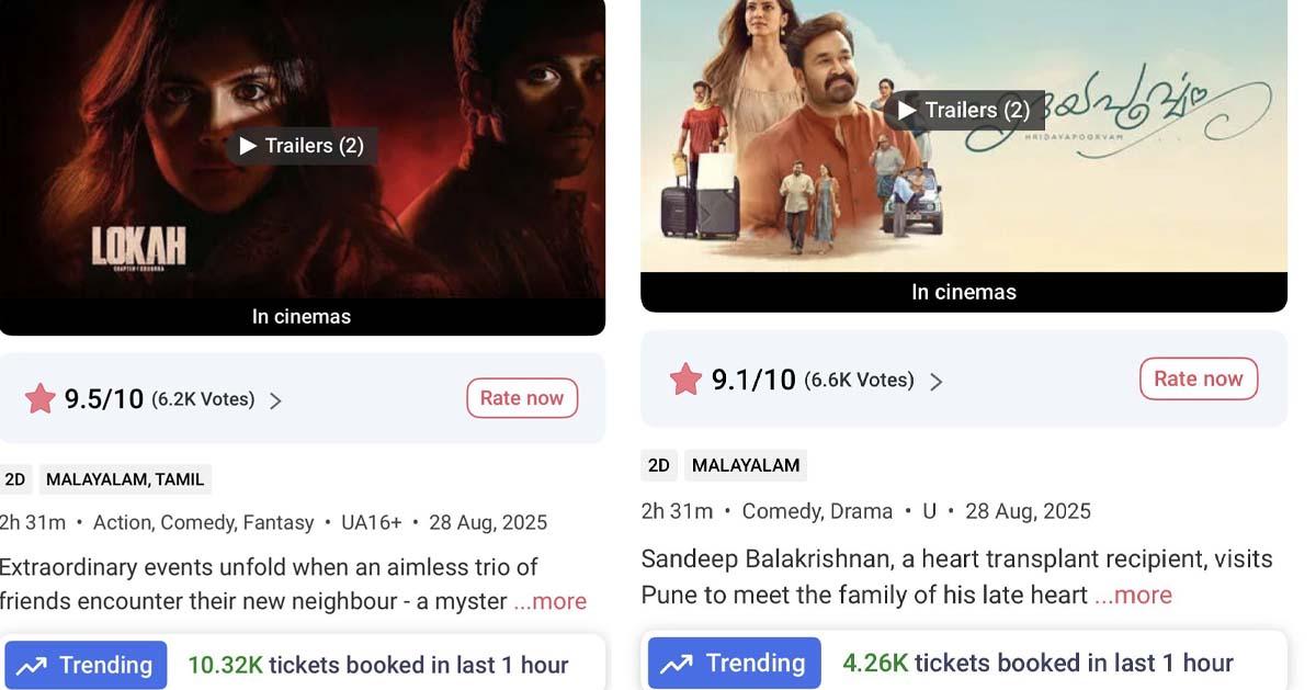 Content Highlight: Lokah Chapter One takes big lead against Hridayapoorvam in Bookmyshow
