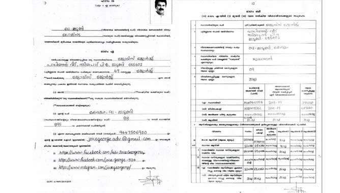 ഇതോടൊപ്പം ക്രിമിനല് കേസും ജോയ്സിനെതിരെയുണ്ടെന്ന് അദ്ദേഹത്തിന്റെ സത്യാവാങ്മൂലത്തില് പറയുന്നു.