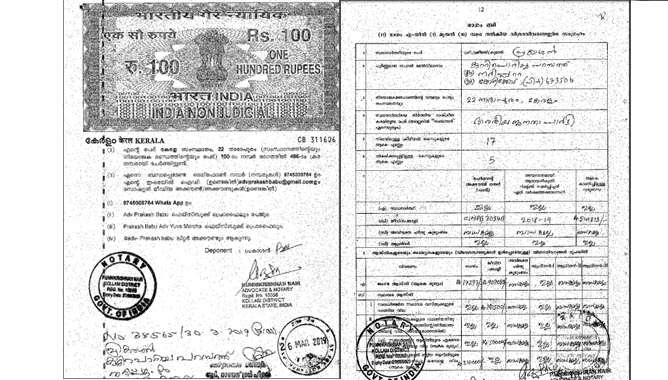 പ്രകാശ് ബാബുവിന്റെ സത്യവാങ്മൂലത്തിന്റെ പകര്പ്പ്
