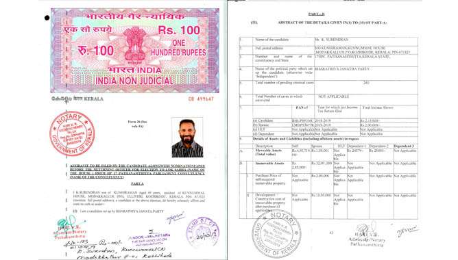 സുരേന്ദ്രന്റെ സത്യവാങ്മൂലത്തിന്റെ പകര്പ്പ്