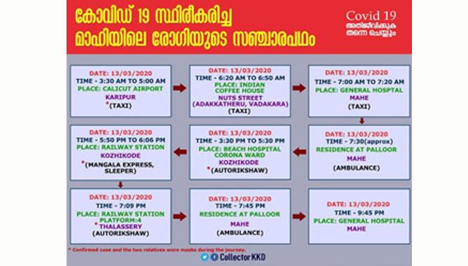 കോഴിക്കോട്: മാഹിയില് കൊവിഡ് 19 സ്ഥരീകരിച്ച രോഗി തലശ്ശേരിയിലെത്തിയത് കോഴിക്കോട് നിന്ന് ട്രെയിന് മാര്ഗം. മാര്ച്ച് 13നാണ് രോഗിയെ മാഹി ആശുപത്രിയില് നിന്ന് കോഴിക്കോട് ബീച്ച് ആശുപത്രിയിലേക്ക് ആംബുലന്സില് എത്തിച്ചത്.