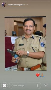 സംഭവ സമയത്ത് സ്ഥലത്ത് ഉണ്ടായിരുന്ന പൊലീസ് ഉദ്യോഗസ്ഥനായ വി.സി സജ്ജനാരുടെ ചിത്രം ഷെയര് ചെയ്ത് സ്നേഹ ചിഹ്നം നല്കിയാണ് കുമ്പളങ്ങി നൈറ്റ്സ് സംവിധായകന് മധു സി.നാരായണന്റെ പ്രതികരണം. ഇന്സ്റ്റഗ്രാമിലൂടെയാണ് മധുവിന്റെ അഭിനന്ദനം.