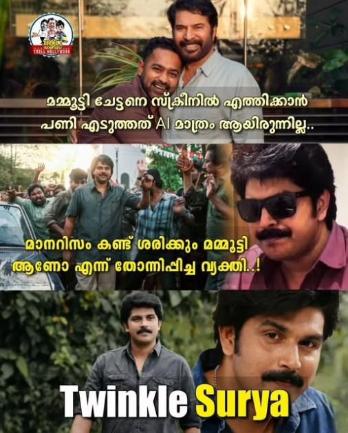പെരുമ്പാവൂര് സ്വദേശിയായ അദ്ദേഹം മമ്മൂട്ടിയുമായുള്ള രൂപസാദൃശ്യം കാരണം മുമ്പേ തന്നെ ശ്രദ്ധിക്കപ്പെട്ടിരുന്നു. ഇന്സ്റ്റഗ്രാമിലും മറ്റും മമ്മൂട്ടിയുടെ ഗാനങ്ങളും ഡയലോഗുകളും അനുകരിച്ച് വീഡിയോസ് ചെയ്യുന്ന വ്യക്തി കൂടെയാണ് ട്വിങ്കിള് സൂര്യ.