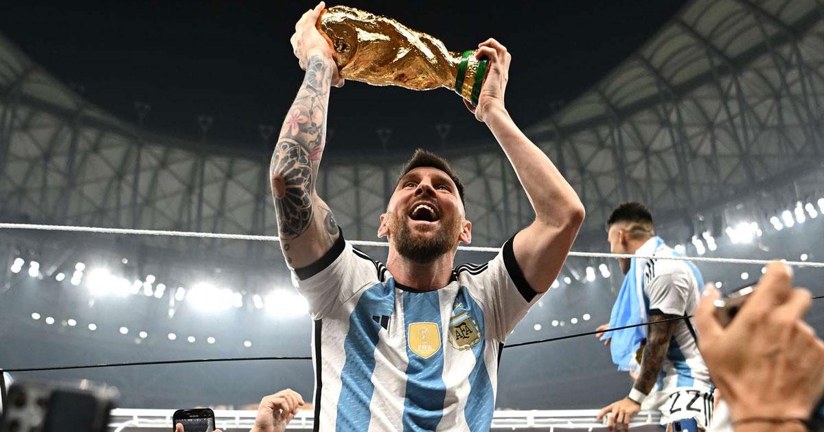 മെസി ലോകകപ്പ് കിരീടവുമായി-Photo: People.com