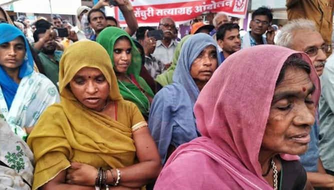 ജലനിരപ്പുയര്ന്നതിനെ തുടര്ന്ന് ആദിവാസി സ്ത്രീകള് നടത്തിയ പ്രക്ഷോഭം (കടപ്പാട്- ദ വയര്)