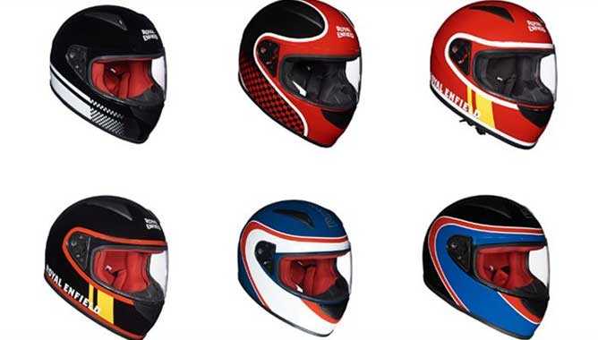 പഴമ തുളുമ്പുന്ന രണ്ടു ഹെല്മറ്റുകള് റോയല് എന്ഫീല്ഡ് പുറത്തിറക്കി. ഐ.എസ്.ഐ, ഡി.ഒ.ടി സര്ട്ടിഫിക്കേഷനുകളോടെ എത്തുന്ന ഫുള് ഫേസ് ഹെര്മറ്റുകള് രണ്ടു രൂപകല്പ്പനയില് വില്പ്പനയ്ക്കുണ്ട്.