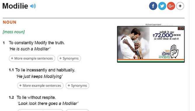 ഇംഗ്ലീഷ് ഡിക്ഷ്ണറിയില് മോദിലൈ(modilie) എന്ന പുതിയ വാക്ക്; നുണ പറയുന്ന മോദിയെ ട്രോളി രാഹുല് ഗാന്ധി