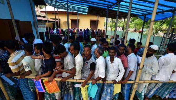 People queue to check their names on the draft list of the National Register of Citizens in India’s north-eastern state of Assam.