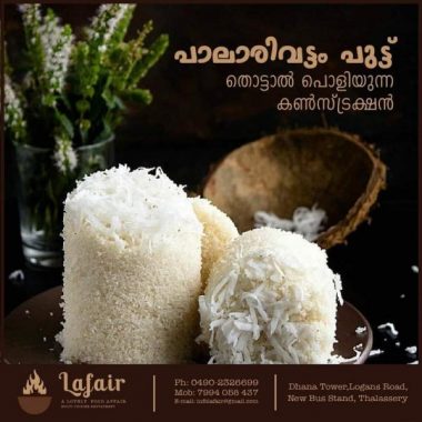 തലശ്ശേരിയിലെ ലാ ഫെയര് റെസ്റ്റോറന്റാണ് പാലാരിവട്ടം പുട്ടിന്റെ നിര്മ്മാതാക്കള്. റെസ്റ്റോറന്റ് പുറത്തിറക്കിയ പരസ്യ ചിത്രമാണ് ഇപ്പോള് പലരുടേയും ഫേസ്ബുക്കിന്റെയും വാട്സ്ആപിന്റെയും വാള്പ്പേപ്പറും പ്രൊഫൈല് പിക്ചറും.