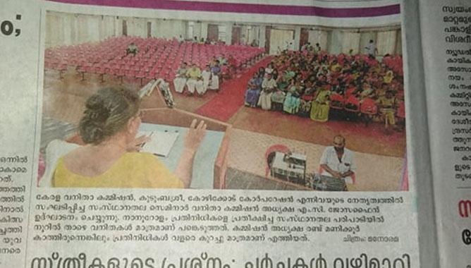 കോഴിക്കോട്: കുടുംബശ്രീയുമായി ചേര്ന്ന് വനിതാകമ്മീഷന് ഇന്നലെ സംഘടിപ്പിച്ച വര്ത്തമാനവും സ്ത്രീ സമൂഹവും എന്ന ചടങ്ങിന്റെ ചിത്രങ്ങളാണ് ഇപ്പോള് സാമൂഹ്യമാധ്യമങ്ങളില് ചര്ച്ച. മാതൃഭൂമി പത്രത്തില് ഇന്ന് വന്ന വാര്ത്തയിലാണ് വനിതാ കമ്മീഷന് അധ്യക്ഷ എം.സി ജോസഫൈന് സംസാരിക്കുന്ന ചിത്രത്തിനൊപ്പം ആളൊഴിഞ്ഞ കസേരകള് മാത്രം കാണിച്ച് ചിത്രം കൊടുത്തത്. രണ്ടര മണിക്കൂര് വൈകി തുടങ്ങിയ പരിപാടിയില് വനിതാ കമ്മീഷന്റെ പരിപാടി കാണാന് വനിതകള് പോലുമില്ലെന്നാണ് വാര്ത്ത.