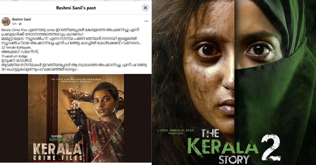 ഇപ്പോഴിതാ കേരള സ്റ്റോറിക്കെതിരായുള്ള പ്രതിഷേധങ്ങളെക്കുറിച്ച് സോഷ്യല് മീഡിയയില് പങ്കുവെച്ച പോസ്റ്റാണ് ചര്ച്ചാവിഷയം. കേരള ക്രൈം ഫയല്സ് എന്ന സീരീസ് ഇറങ്ങിയപ്പോള് കേരളത്തെ അപമാനിച്ചു എന്ന് പ്രബുദ്ധര്ക്ക് തോന്നാത്തത് എന്തുകൊണ്ടാണെന്ന് ചോദിച്ചാണ് പോസ്റ്റ് ആരംഭിക്കുന്നത്. രശ്മി സനില് എന്ന ഐ.ഡിയാണ് പോസ്റ്റ് പങ്കുവെച്ചത്.