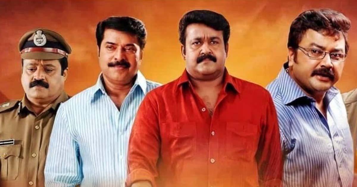 ആദ്യപകുതിയുടെ മുക്കാല് ഭാഗവും സുരേഷ് ഗോപിയുടെ ആന്റണി പുന്നക്കാടന് എന്ന കഥാപാത്രമാണ് നിറഞ്ഞുനിന്നത്. ആദ്യപകുതിയുടെ അവസാനത്തോടെയാണ് മോഹന്ലാലും മമ്മൂട്ടിയും രംഗപ്രവേശം ചെയ്യുന്നത്. മാസ് എന്ട്രിയില് മമ്മൂട്ടി പ്രത്യക്ഷപ്പെട്ടപ്പോള് ബഹളമൊന്നുമില്ലാത്ത ഇന്ട്രോയാണ് മോഹന്ലാലിനെ അവതരിപ്പിച്ചത്. എന്നാല് ഇന്റര്വെല് സീന് എല്ലാ മോഹന്ലാല് ഫാന്സിനെയും ആവേശത്തിന്റെ കൊടുമുടിയിലെത്തിച്ചു.