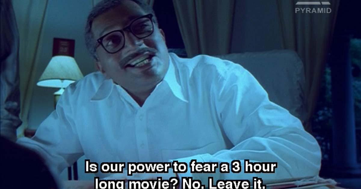 ‘റിലീസ് തടഞ്ഞാല് നമുക്കാണ് ചീത്തപ്പേര്, മൂന്ന് മണിക്കൂറുള്ള സിനിമ കണ്ട് പേടിക്കുന്നവരാണോ നമ്മുടെ സര്ക്കാര്?’ എന്നാണ് തമിഴ്സെല്വന് ചോദിക്കുന്നത്. 1997ല് റിലീസായ ചിത്രത്തിലെ ഡയലോഗ് ഇന്നും പ്രസക്തമാണെന്ന് പലരും അഭിപ്രായപ്പെടുന്നു. അന്ന് മണിരത്നം എഴുതിയ ഡയലോഗിന്റെ പൊരുള് ഇന്നും ഭരണാധികാരികള്ക്ക് മനസിലായില്ലെന്നും ചിലര് പറയുന്നുണ്ട്.