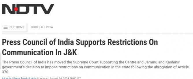 കശ്മീര് ടൈംസ് എക്സി.എഡിറ്റര് അനുരാധ ഭാസീന് സമര്പ്പിച്ച ഒരു റിട്ട് ഹരജി സുപ്രീം കോടതി പരിഗണിക്കുന്നതിന് ഇടയിലാണ്, ഞങ്ങള്ക്കും ചിലതു പറയാനുണ്ട്, അനുവദിക്കണമേ എന്ന ഹരജിയുമായി പ്രസ് കൗണ്സില് പാഞ്ഞു ചെന്നിരിക്കുന്നത്.