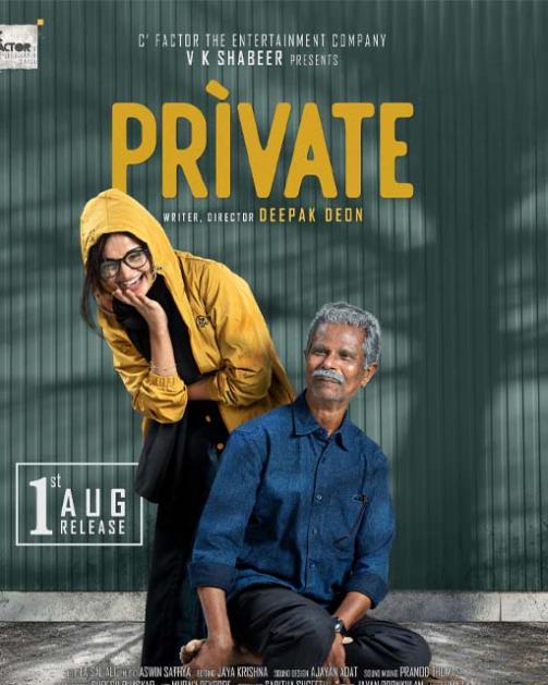 പ്രൈവറ്റ് എന്നാണ് ചിത്രത്തിന് പേരിട്ടിരിക്കുന്നത്. ‘ലെറ്റ്സ് ഗോ ഫോര് എ വാക്ക്’ എന്ന ടാഗ് ലൈനോടെയാണ് പോസ്റ്റര് പുറത്തുവിട്ടത്. ഇന്ദ്രന്സും മീനാക്ഷിയും ഒന്നിച്ചിരിക്കുന്ന ചിത്രമാണ് പോസ്റ്ററിലുള്ളത്. ഇരുവര്ക്കും പുറമെന്നു ആന്റണിയും പ്രൈവറ്റില് പ്രധാനവേഷം കൈകാര്യം ചെയ്യുന്നുണ്ട്. ബാലന് മാരാര് എന്ന കഥാപാത്രമായി ഇന്ദ്രന്സ് വേഷമിടുമ്പോള് അജിത ബീഗം എന്ന കഥാപാത്രത്തെയാണ് മീനാക്ഷി അവതരിപ്പിക്കുന്നത്.