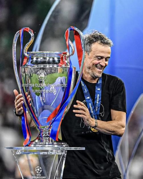 യുവേഫ ചാമ്പ്യൻസ് ലീഗ് ട്രോഫിയുമായി ലൂയിസ് എൻറിക്വ് . Photo: Fabrizio Romano/facebook.com