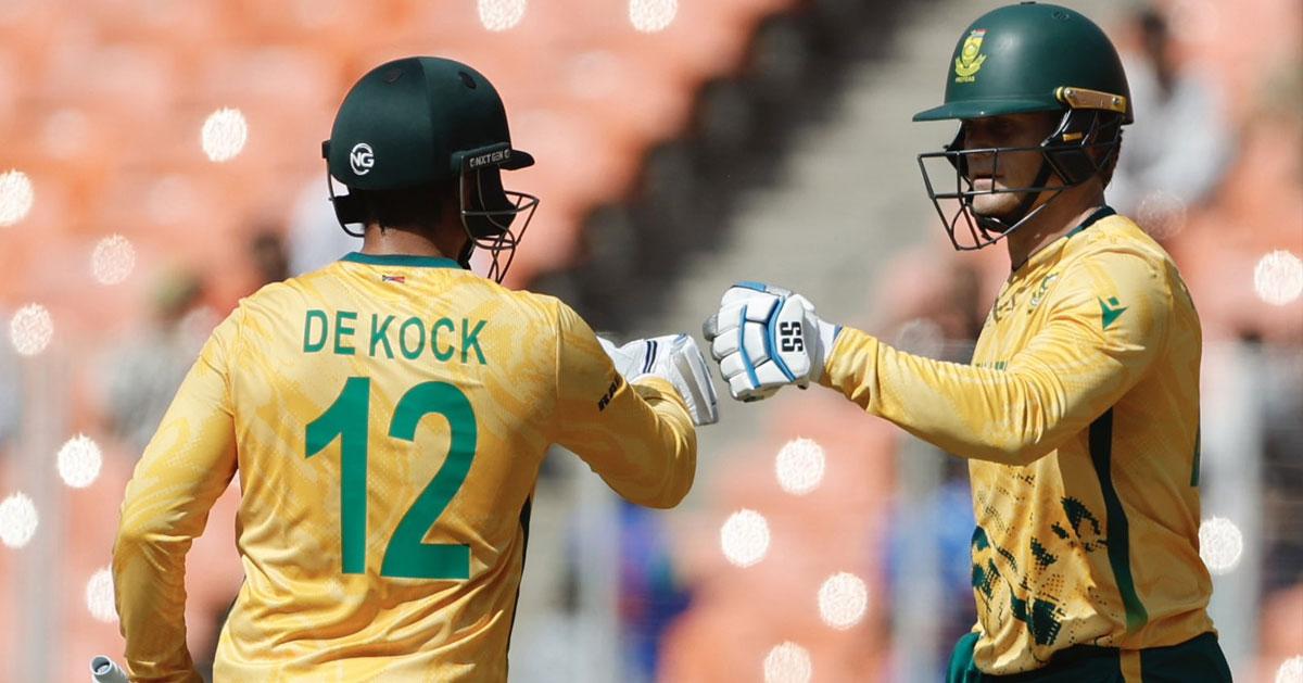 ക്വിന്റണ് ഡി കോക്കിന്റെയും റിയാന് റിക്കിള്ട്ടന്റെയും ബാറ്റിങ് കരുത്തിലാണ് പ്രോട്ടിയാസ് സ്കോര് ഉയര്ത്തിയത്. റിയാന് 28 പന്തില് നാല് സിക്സും അഞ്ച് ഫോറും ഉള്പ്പെടെ 61 റണ്സാണ് അടിച്ചെടുത്തത്.