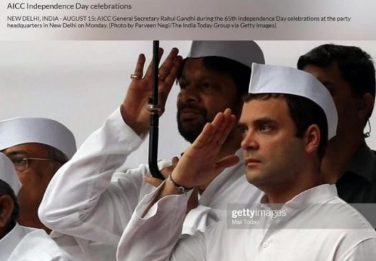 കോണ്ഗ്രസ് മുന് അദ്ധ്യക്ഷന് രാഹുല് ഗാന്ധി എം.പി ഇടതുകയ്യാല് ദേശീയ പതാകയെ സല്യൂട്ട് ചെയ്യുന്നു എന്നാണ് ആ ചിത്രത്തോടൊപ്പം പ്രചരിപ്പിക്കുന്നത്. എന്നാല് ഈ ചിത്രവും ഐഷി ഘോഷിന്റെ ചിത്രം മോര്ഫ് ചെയ്തത് പോലെയുള്ളതാണ്.