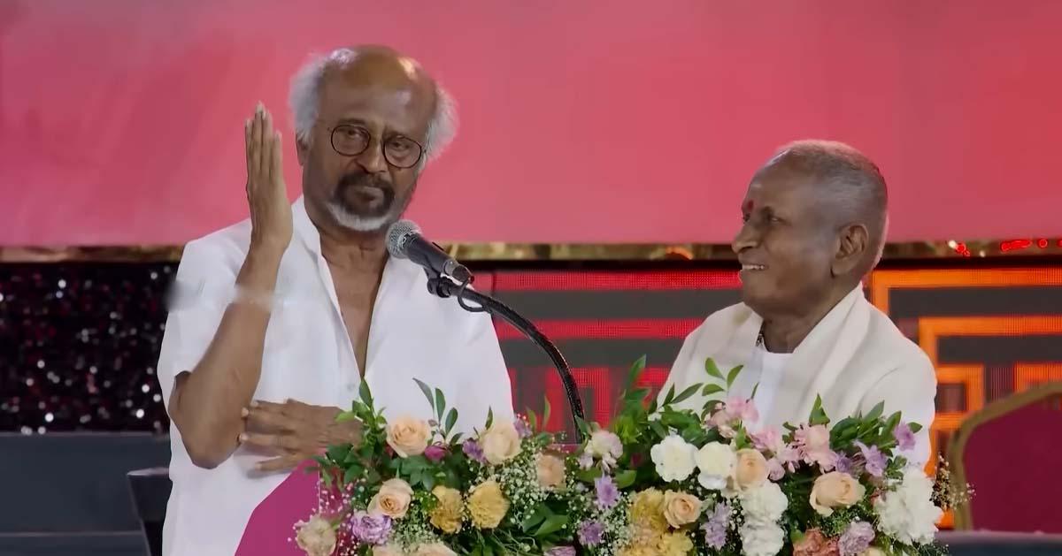 സിനിമാലോകത്ത് ഇളയരാജയുടെ 50ാം വര്‍ഷത്തിന്റ ആഘോഷം കഴിഞ്ഞദിവസം ചെന്നൈയില്‍ വെച്ച് നടന്നിരുന്നു. തമിഴ്‌നാട് മുഖ്യമന്ത്രി എം.കെ. സ്റ്റാലിന്‍, രജിനികാന്ത്, കമല്‍ ഹാസന്‍ തുടങ്ങി സിനിമാലോകത്തെ പല വമ്പന്മാരും ചടങ്ങില്‍ പങ്കെടുത്തിരുന്നു. തമിഴ് സൂപ്പര്‍സ്റ്റാര്‍ രജിനികാന്തും ഇളയരാജയും തമ്മിലുള്ള രസകരമായ സംഭാഷണമാണ് സോഷ്യല്‍ മീഡിയയില്‍ ചര്‍ച്ച.