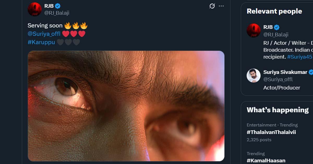 Content Highlight: RJ Balaji shares the screenshot of Suriya in Karuppu movie