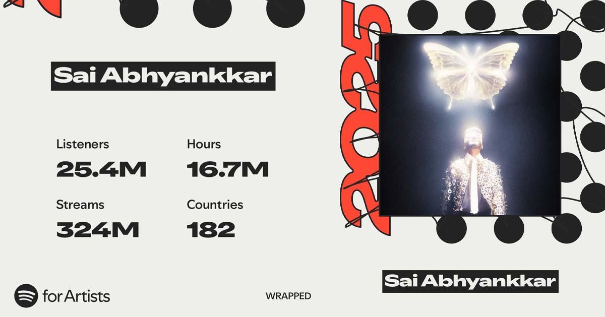 ഓണ്ലൈന് മ്യൂസിക് പ്ലാറ്റ്ഫോമായ സ്പോട്ടിഫൈയിലൂടെ 25.4 മില്യണ് ആളുകള് തന്റെ പാട്ടുകള് കേട്ടെന്നും 324 മില്യണ് സ്ട്രീമുകള് ഉണ്ടായെന്നുമാണ് പുതിയ വാര്ത്ത. തന്റെ സോഷ്യല് മീഡിയ പേജുകളിലൂടെയാണ് സായ് ഈ വര്ഷത്തെ സ്പോട്ടിഫൈ വ്രാപ്പ്ഡ് സ്റ്റാറ്റുകള് പങ്കുവെച്ചത്. ‘രാജാധി രാജന് താന്’ എന്ന് ഈ പോസ്റ്റിന് സ്പോട്ടിഫൈ ഇന്ത്യ കമന്റ് പങ്കുവെക്കുകയും ചെയ്തു. വെറും രണ്ട് സിനിമകള്ക്ക് സംഗീതമൊരുക്കിക്കൊണ്ട് ഈ വര്ഷത്തെ സെന്സേഷനായി മാറാന് സായ്ക്ക് സാധിച്ചു.
