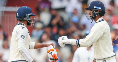 0/2 എന്ന സ്കോറിലാണ് ഇന്ത്യയുടെ രണ്ടാം ഇന്നിങ്സ് തുടങ്ങിയത്. ഇംഗ്ലണ്ട് വമ്പന് ലീഡ് നേടിയിരുന്നു. തോല്വി ഉറപ്പിച്ച ഘട്ടത്തില്നിന്ന് കെ.എല് രാഹുലും ശുഭ്മന് ഗില്ലും സുന്ദറും ജഡേജയും ചേര്ന്ന് ഇന്ത്യയെ രക്ഷിച്ചെടുക്കുകയായിരുന്നു.