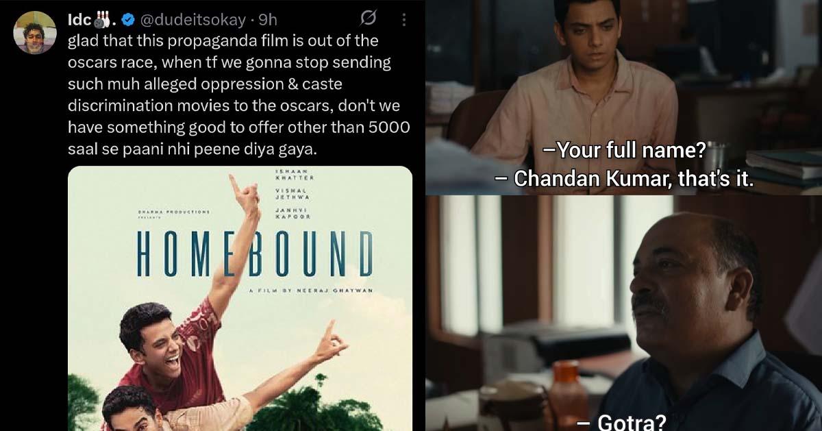 ‘ജാതിയുടെ പേരിലുള്ള അടിച്ചമര്ത്തലും വിവേചനവും കാണിക്കുന്ന ഇത്തരം സിനിമകള് അന്താരാഷ്ട്ര മത്സരങ്ങളിലേക്ക് അയക്കുന്നത് എന്ന് നിര്ത്തും? ഇതുപോലുള്ള വ്യാജ പ്രൊപ്പഗണ്ട സിനിമ പുറത്തായതില് സന്തോഷം’ ഡ്യൂഡ് ഇറ്റ്സ് ഓക്കെ എന്ന പേജ് പങ്കുവെച്ച കുറിപ്പില് പറഞ്ഞു. എന്നാല് ഹോംബൗണ്ട് പറയുന്ന ശക്തമായ രാഷ്ട്രീയത്തെ പിന്തുണച്ചുകൊണ്ടും ഇത്തരം പോസ്റ്റുകള്ക്ക് മറുപടിയുമായി ചിലര് രംഗത്തെത്തുന്നുണ്ട്.