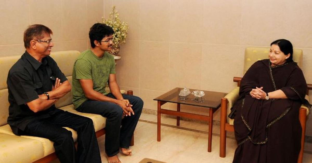 ജയലളിതക്കൊപ്പം വിജയ് യും പിതാവും. Photo: The Hindu